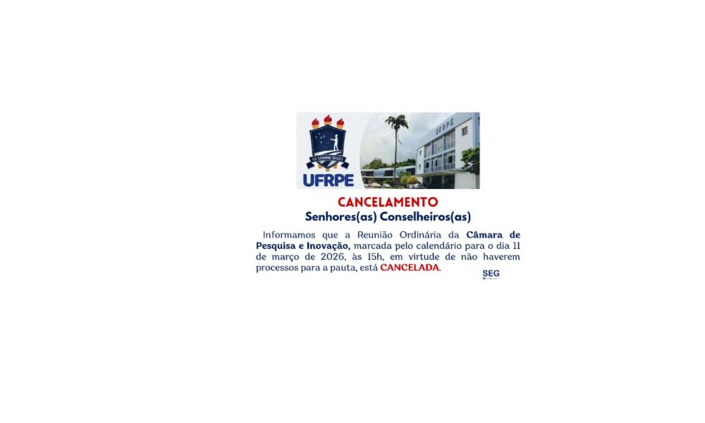 CANCELAMENTO - Reunião da Câmara de Pesquisa e Inovação (11/03/26)